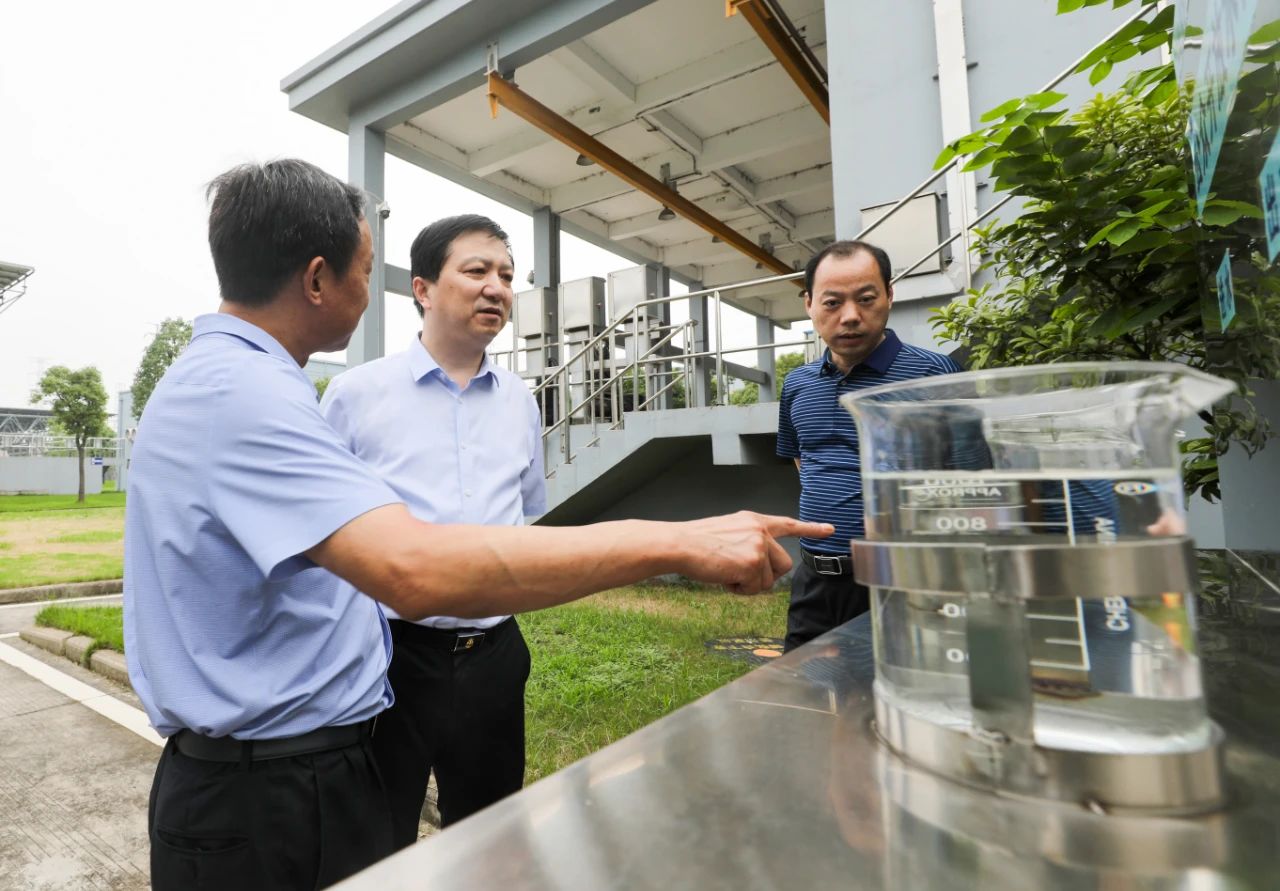 在六圩污水處理廠,夏正東實(shí)地察看了出水泵房、光伏電站等生產(chǎn)區(qū)域,詳細(xì)了解企業(yè)項(xiàng)目運(yùn)營、污水管網(wǎng)現(xiàn)狀、廠區(qū)運(yùn)行調(diào)控、綠色循環(huán)經(jīng)濟(jì)產(chǎn)業(yè)鏈等情況。