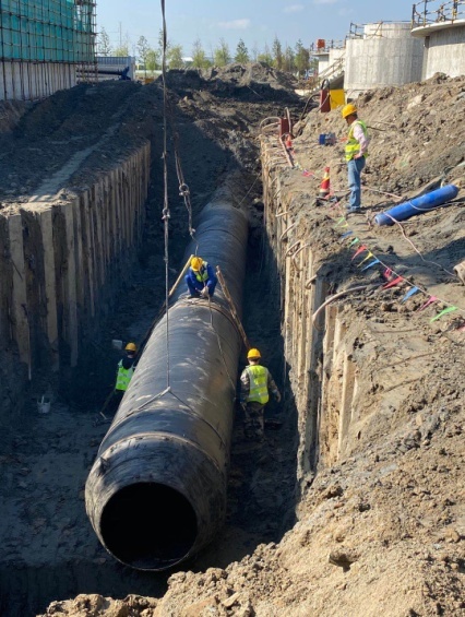 為保證施工順利進(jìn)行,施工過程中采用了多點(diǎn)井點(diǎn)降水,保證施工作業(yè)面無水狀態(tài)。在確保進(jìn)度和工期的同時(shí),潔源公司項(xiàng)目部狠抓質(zhì)量控制、安全管理,對關(guān)鍵部位、關(guān)鍵工序的施工過程中全程監(jiān)管,嚴(yán)格把關(guān),在管道鋪設(shè)過程中,做到分層夯實(shí),對回填土嚴(yán)格要求,保證了回填質(zhì)量。雖然二沉池進(jìn)水工藝管道施工,存在施工作業(yè)面小、對縫難度大、過程控制要求高等難點(diǎn),但潔源公司項(xiàng)目部克服困難,抓好現(xiàn)場質(zhì)量檢查,對管道焊縫進(jìn)行無損探傷檢測,對回填土進(jìn)行環(huán)刀見證取樣,保證了施工質(zhì)量,最終在10月12日完成了該段管道鋪設(shè)任務(wù),為湯汪污水處理廠三期工程擴(kuò)建項(xiàng)目早日通水打通了主動脈。