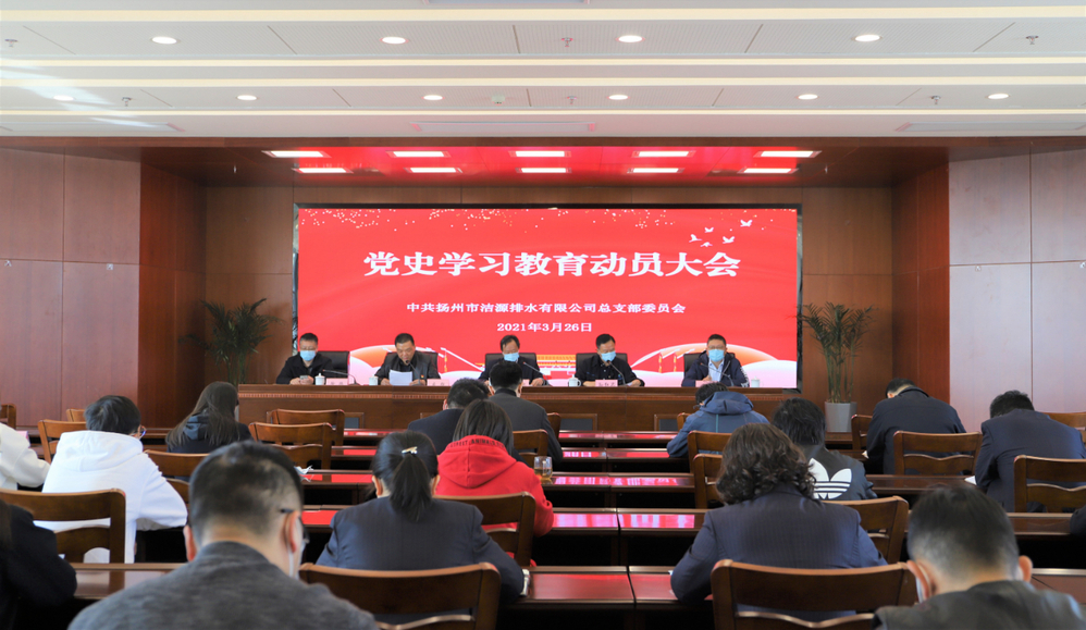 3月26日上午,潔源排水公司黨總支在五樓報告廳組織召開了黨史學習教育動員會,黨總支班子、各支部書記、支委、黨員干部和入黨積極分子共計50余人參加會議。