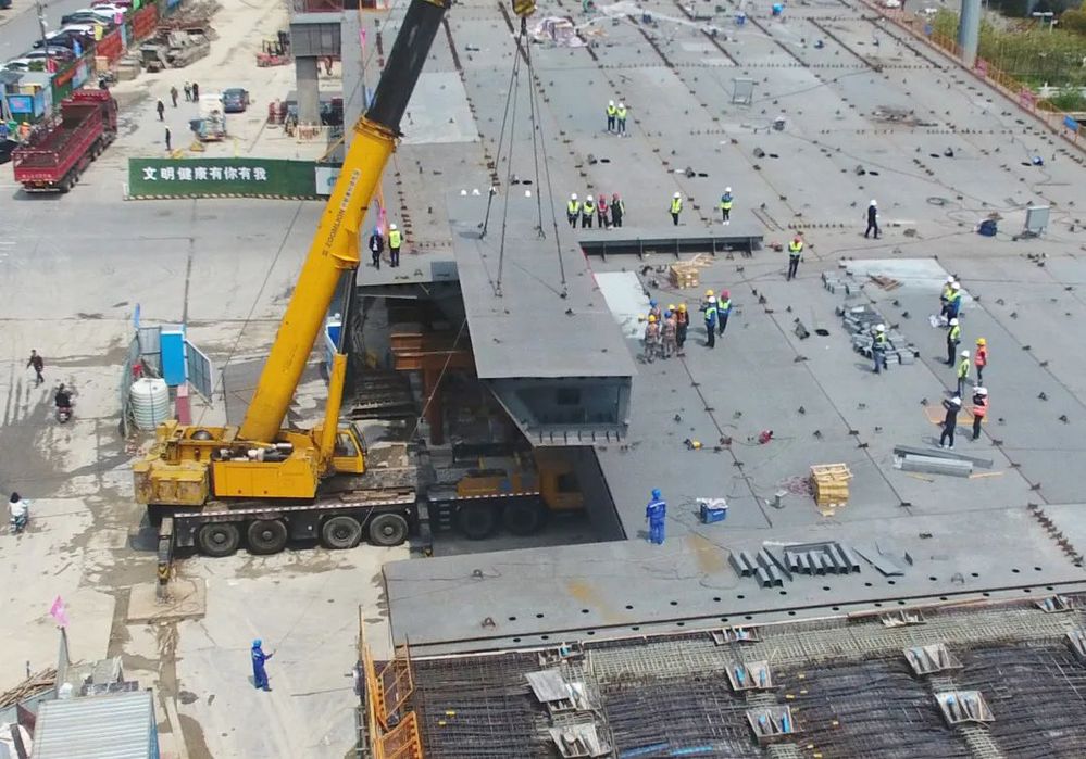 潤(rùn)揚(yáng)北路主線高架橋上跨翠崗路設(shè)計(jì)采用等截面鋼箱梁,鋼箱梁總長(zhǎng)106米,橋面寬約39米,分60個(gè)節(jié)段吊裝,最重的鋼箱梁節(jié)段約90噸,鋼箱梁總重達(dá)2700噸,采用兩臺(tái)260T大噸位汽車(chē)吊進(jìn)行吊裝。