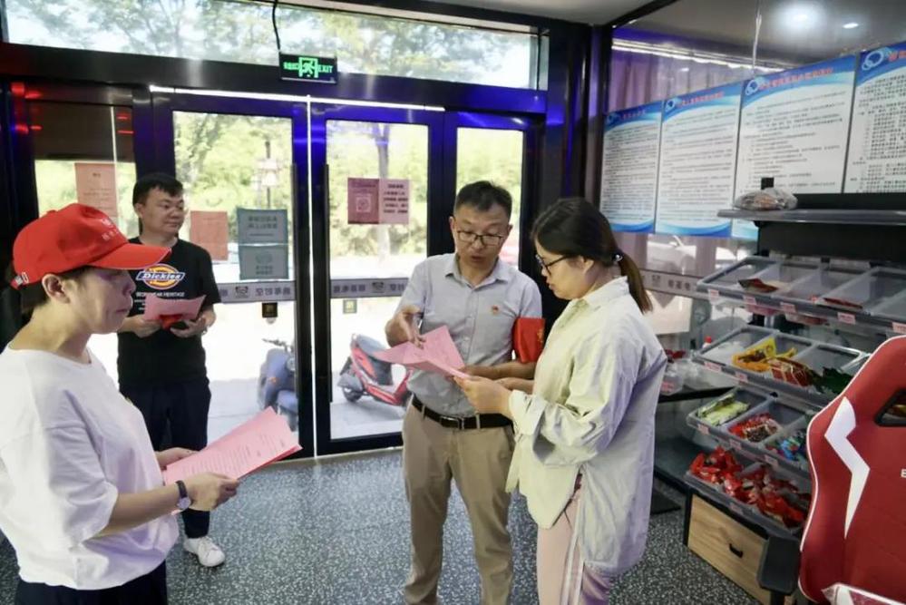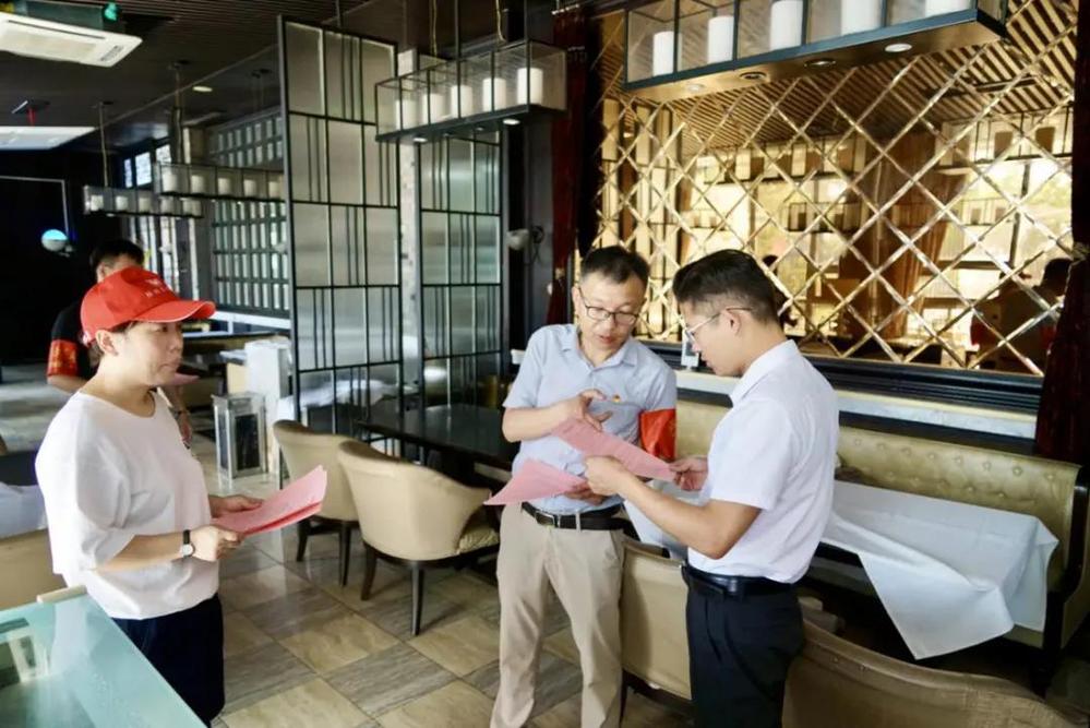 黨員志愿者們兵分兩路,一部分黨員志愿者在演練現(xiàn)場(chǎng)幫助工作人員進(jìn)行現(xiàn)場(chǎng)引導(dǎo)與疏導(dǎo),另外一部分黨員志愿者則前往街區(qū)內(nèi)的各家餐飲門店,上門進(jìn)行消防安全知識(shí)宣傳講解和消防安全知識(shí)宣傳資料的發(fā)放。