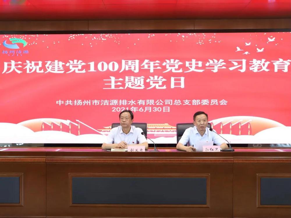 為熱烈慶祝中國共產黨成立100周年,根據公司黨總支黨史學習教育“7+1”活動方案安排,6月30日上午,潔源排水公司開展了黨史學習教育主題黨日活動。公司領導班子成員、中層干部、黨員及職工代表共計90余人參加活動。