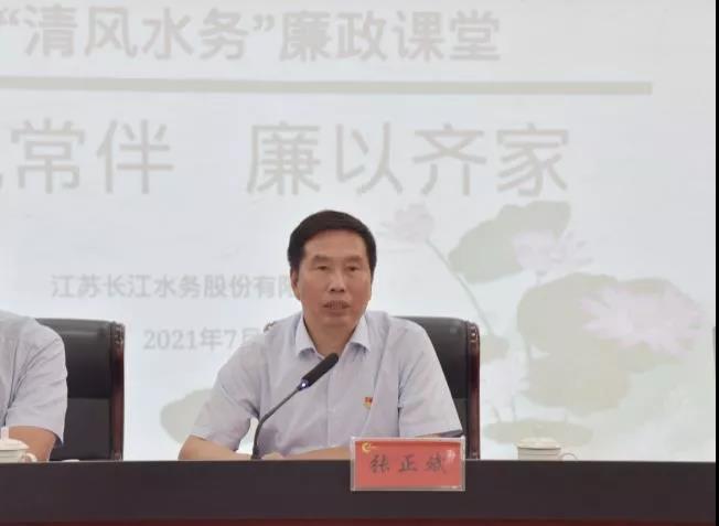 城控集團(tuán)黨委委員、長江水務(wù)黨委書記、董事長張正斌發(fā)表講話,他分別從家和萬事興、量變引起質(zhì)變、小心成為“獵物”這三個方面給在場所有人員再次敲響廉政警鐘。他表示,長江水務(wù)多年來各項工作取得的長足發(fā)展,飽含全體員工的辛勤付出和努力,更離不開職工家屬的關(guān)心與支持。家風(fēng)是黨風(fēng)的重要組成部分,家風(fēng)連著黨風(fēng),家廉才能政廉,全體黨員干部要從百年黨史中傳承優(yōu)良家風(fēng),把修身齊家落到實處,要和家人同心協(xié)力,守好家庭防線,真正把家風(fēng)建設(shè)內(nèi)化于心、外化于行,做到修身律己、廉潔齊家,為扎實推進(jìn)公司全面從嚴(yán)治黨向縱深發(fā)展,譜寫公司高質(zhì)量發(fā)展新篇章提供堅強(qiáng)保障。