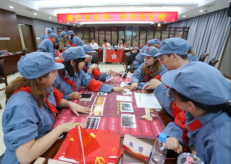課程以講授、影片片段觀摩、模擬推演、小組討論、互動演示等形式,從歷史時間、戰(zhàn)役模擬、精神提煉、思想踐行等方面展開學習?;顒蝇F(xiàn)場,每位學員都深入其中,仿佛置身于那個戰(zhàn)火紛飛的年代,真實演繹了“面臨敵軍圍追堵截”“經(jīng)歷湘江血戰(zhàn)”“召開遵義會議”“上演飛奪瀘定橋”等重要事件,進一步領(lǐng)悟了革命先輩堅定信仰、不怕犧牲,勇往直前、堅忍不拔,眾志成城、百折不撓的偉大長征精神。