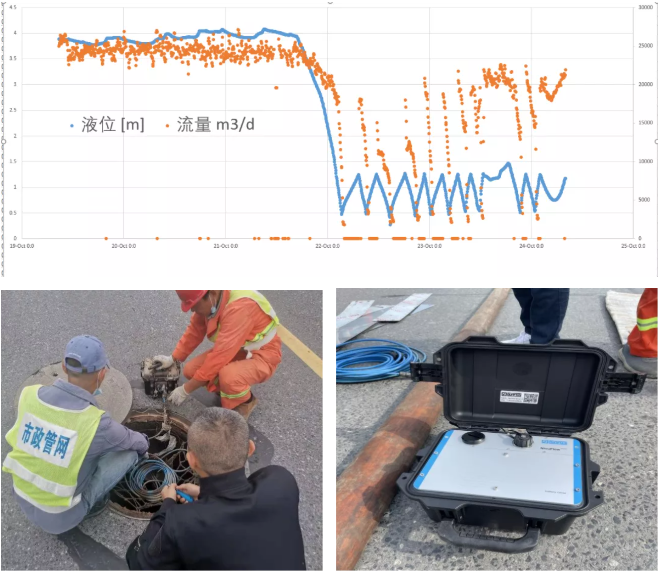 宏溪路泵站所覆蓋的污水收集區(qū)域由G328國道-趙家支溝-儀揚(yáng)河-潤(rùn)揚(yáng)南路合圍而成,總面積約5平方公里,市政管網(wǎng)公司于2021年6月啟動(dòng)揚(yáng)州高新區(qū)市政道路污水管網(wǎng)疏通養(yǎng)護(hù)工程,在現(xiàn)場(chǎng)排查過程中發(fā)現(xiàn),該區(qū)域市政道路管網(wǎng)存在污水運(yùn)行液位高、流速快、雨污混接點(diǎn)多等特點(diǎn),為精確分析、計(jì)算區(qū)域外水情況,科研小組采用國際先進(jìn)的區(qū)域降雨量、管道污水流量、及UV-COD水質(zhì)在線監(jiān)測(cè)技術(shù),對(duì)試點(diǎn)范圍內(nèi)降雨情況、污水管網(wǎng)運(yùn)行情況、污水水質(zhì)進(jìn)行監(jiān)測(cè)、同時(shí)結(jié)合宏溪路泵站運(yùn)行情況,區(qū)域內(nèi)居民小區(qū)、個(gè)體工商戶、企業(yè)的用水量等基礎(chǔ)數(shù)據(jù)進(jìn)行比對(duì)、分析,發(fā)現(xiàn)該區(qū)域旱天污水流量約為2.5萬噸/天且COD濃度值很低,考慮到區(qū)域內(nèi)居民及工業(yè)用水量?jī)H為約6千噸/天,因此推算區(qū)域外水量約為1.9萬噸/天。隨后,科研小組依托地理信息系統(tǒng)(GIS),污水管網(wǎng)及河道水力模型縮小區(qū)域內(nèi)外水排查范圍,對(duì)存在疑似外水入侵的路段管網(wǎng)及檢查井進(jìn)行污水取樣分析,鎖定三處疑似外水入侵點(diǎn)(銀柏路WS165032井段、祥園路WS176031井段以及銀河路WS167031-1井段),并對(duì)以上井段進(jìn)行閉水試驗(yàn)查找外水進(jìn)入源頭,由于試驗(yàn)管段內(nèi)水位下降緩慢,同時(shí)河道無水流異常,故判定以上三處疑似點(diǎn)位無外水入侵。通過進(jìn)一步溯源排查,科研小組發(fā)現(xiàn)外水入侵主要為在前期市政道路污水管網(wǎng)疏通養(yǎng)護(hù)過程中發(fā)現(xiàn)的4處雨污混接點(diǎn),在完成以上4處雨污混接點(diǎn)處置修復(fù)工作后,宏溪路泵站日污水凈流量約6千噸/天,較修復(fù)前明顯下降,擠出外水約1.9萬噸/天,污水濃度也得到顯著提升,按照污水處理噸水成本1.6元計(jì)算,可以為污水處理廠節(jié)省污水處理成本3萬元/天,年節(jié)省費(fèi)用達(dá)1000多萬元。