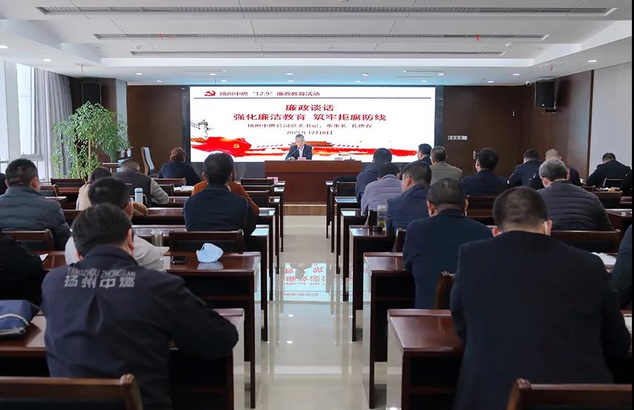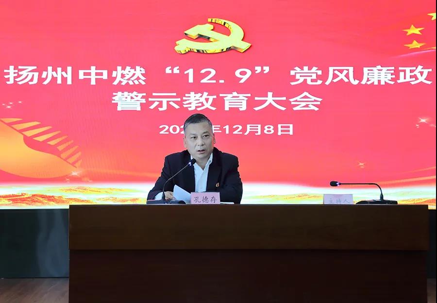 為進(jìn)一步貫徹落實(shí)全面從嚴(yán)治黨方針,強(qiáng)化黨員干部的廉潔自律意識,推動黨風(fēng)廉政建設(shè)向縱深發(fā)展,12月8日下午,揚(yáng)州中燃公司召開黨風(fēng)廉政警示教育專題大會。公司領(lǐng)導(dǎo)班子全體成員、中層干部及關(guān)鍵崗位人員參加會議。