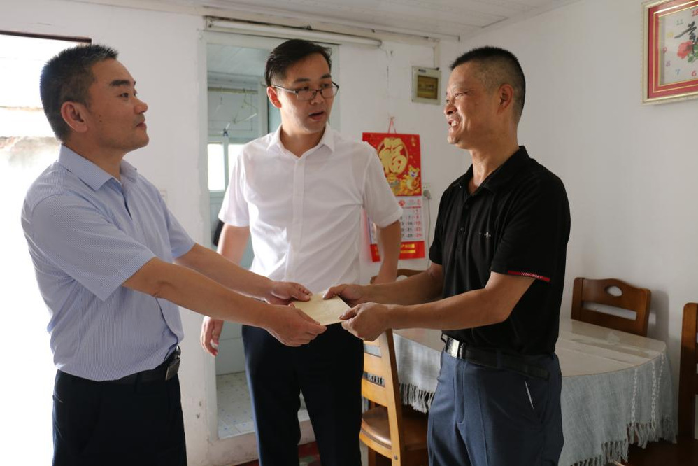 黨員們來到困難退伍老兵家中,與老兵親切交談,聆聽他講述軍旅故事,并且詳細(xì)了解他目前的身體狀況、生活情況,得知2015年他在家不慎跌倒導(dǎo)致腦溢血,加上高血壓需要長(zhǎng)期服藥,生活相對(duì)困難。黨員們送上了防暑用品、生活用品及慰問金,感謝他所作的貢獻(xiàn),同時(shí)囑咐要保持積極樂觀心態(tài),好好保重身體。