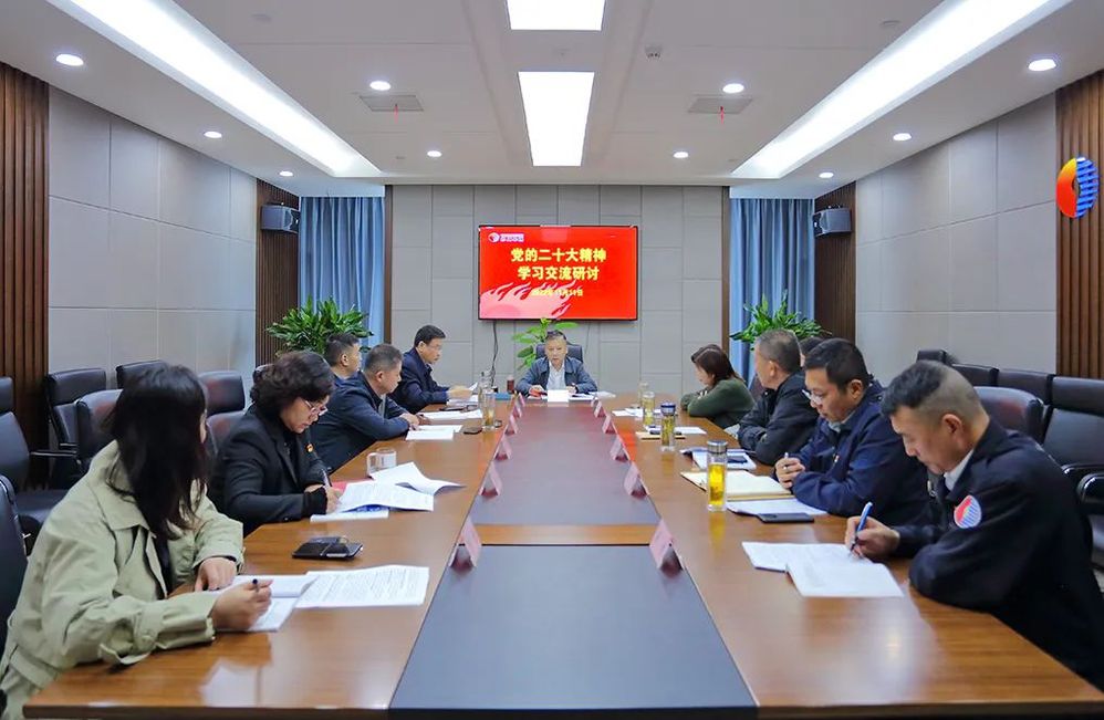 公司黨委中心組圍繞學(xué)習(xí)黨的二十大精神開展專題交流研討。公司董事長(zhǎng)作重點(diǎn)發(fā)言,中心組其他成員結(jié)合各自分管工作,談?wù)J識(shí)、講體會(huì)、明思路。