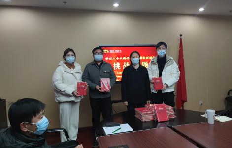 活動分為練習(xí)階段和競賽階段,12月3日至12月6日,參賽者可通過微信小程序進入答題界面每輪練習(xí)隨機50題,每天兩次答題練習(xí)機會。12月6日下午,在市民卡二樓會議室開展現(xiàn)場競賽,題目為50道單項選擇題,累計分?jǐn)?shù)越高,用時較短者獲勝,比賽中,所有隊員全神貫注、認(rèn)真作答,拼手速、比腦力,競賽現(xiàn)場氣氛熱烈。領(lǐng)導(dǎo)班子為獲獎黨員頒發(fā)紀(jì)念品并合影留戀。