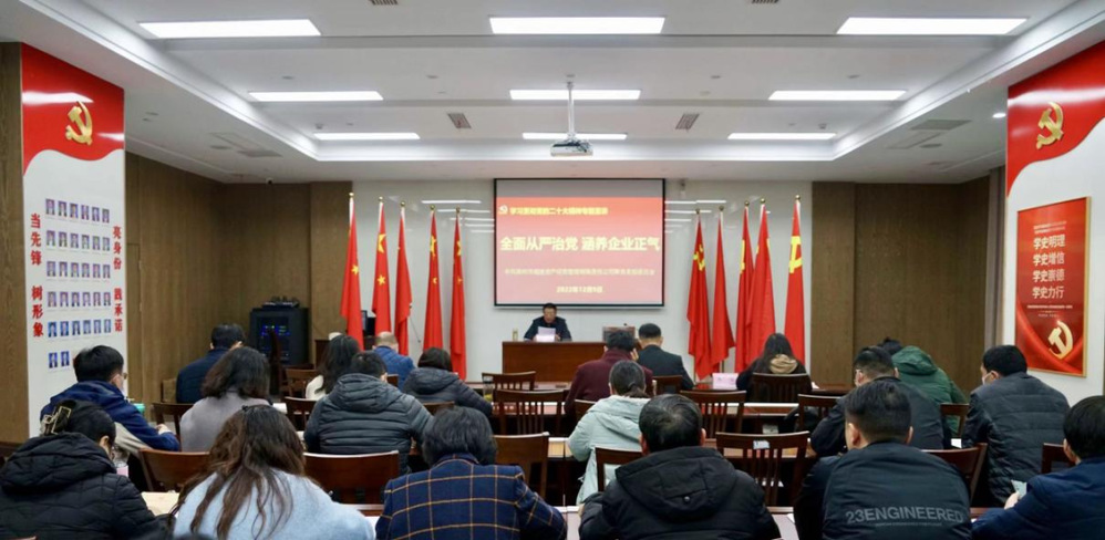 為深入學(xué)習(xí)貫徹黨的二十大精神,堅(jiān)定不移推進(jìn)全面從嚴(yán)治黨向縱深發(fā)展,根據(jù)公司學(xué)習(xí)宣傳貫徹黨的二十大精神工作計(jì)劃以及“12·9”黨風(fēng)廉政教育日宣傳教育活動(dòng)方案,12月9日下午,公司聯(lián)合黨支部書記、董事長(zhǎng)以《全面從嚴(yán)治黨 涵養(yǎng)企業(yè)正氣》為題,開展了學(xué)習(xí)貫徹黨的二十大精神專題宣講。公司全體黨員、中層干部參加了會(huì)議。