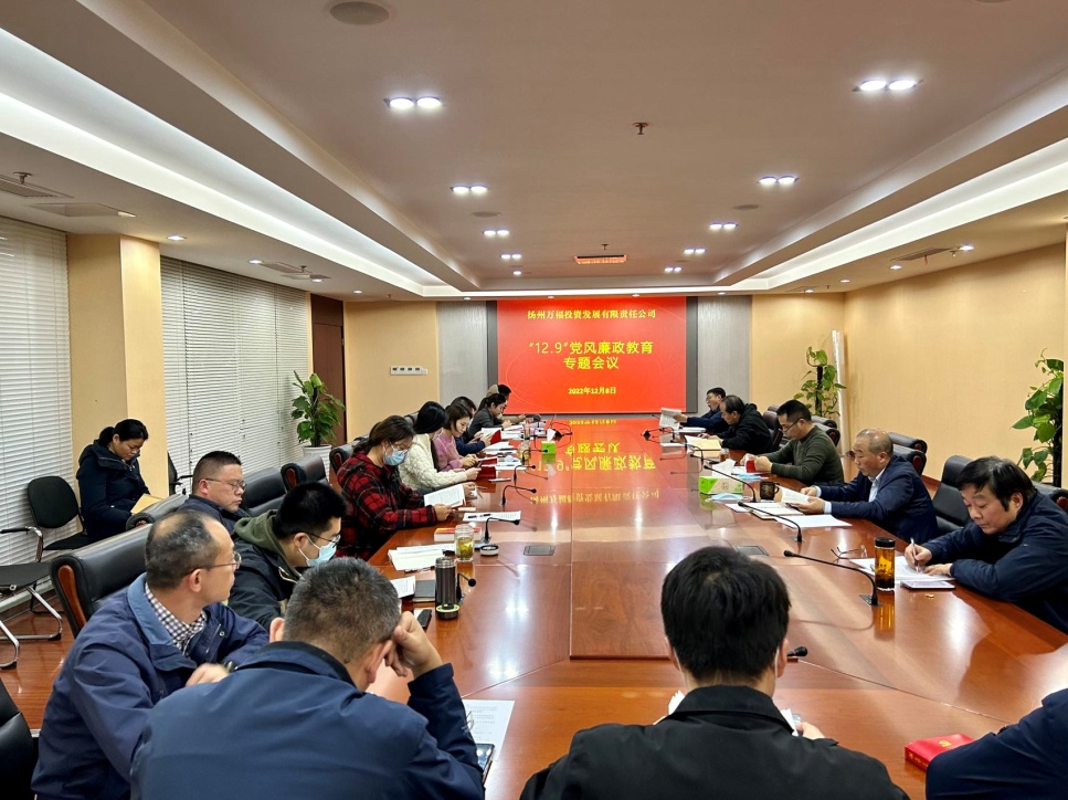 根據(jù)集團紀(jì)委關(guān)于開展“12·9”黨風(fēng)廉政教育活動的有關(guān)部署要求,結(jié)合深入學(xué)習(xí)宣傳貫徹黨的二十大精神,進一步強化黨員干部廉潔自律意識,更好發(fā)揮黨風(fēng)廉政教育在一體推進“不敢腐、不能腐、不想腐”中的重要作用,12月13日,上善公司組織召開“12·9”黨風(fēng)廉政教育專題會議,公司班子成員,各部門、分公司、子公司負責(zé)人參加會議。