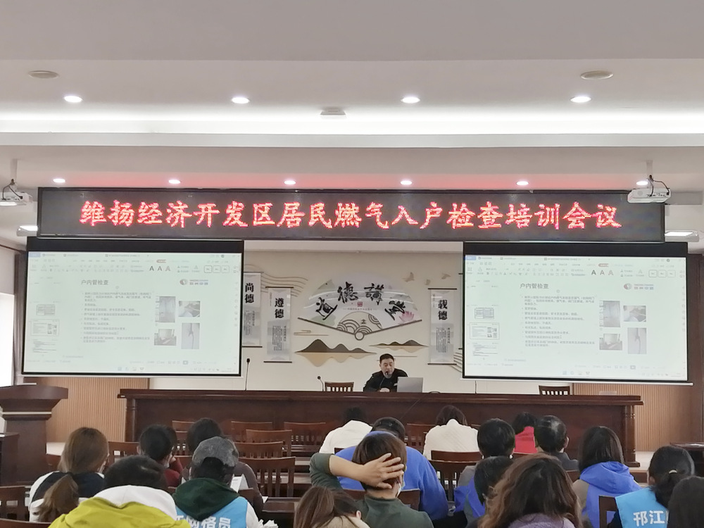 在朱塘社區(qū)會(huì)議室,來自維揚(yáng)開發(fā)區(qū)所轄的社區(qū)網(wǎng)格員和樓棟長共50多人參加活動(dòng)。藍(lán)焰融惠志愿者通過講解PPT、播放宣傳片的形式,從“如何進(jìn)行燃?xì)獍踩詸z、用氣安全隱患分析、燃?xì)庑孤┡c事故發(fā)生的關(guān)聯(lián)度、用氣存在的不安全行為、燃?xì)庑孤?yīng)急處置措施”等方面進(jìn)行了深入淺出的宣講。志愿者現(xiàn)場(chǎng)就大家提出的有關(guān)問題進(jìn)行了答疑解惑,同時(shí)就附近商戶普遍關(guān)注的“瓶改管”工作做出了相應(yīng)的宣傳和積極的回應(yīng)。