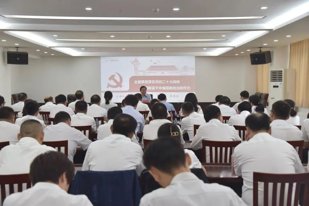 張思忠以《全面貫徹黨的二十大精神 在創(chuàng)新實(shí)干中展現(xiàn)新?lián)?dāng)新作為》為題,從“為何黨員干部必須要有擔(dān)當(dāng)、衡量黨員干部敢于擔(dān)當(dāng)?shù)臉?biāo)準(zhǔn)、用實(shí)際行動詮釋‘擔(dān)當(dāng)’”三個(gè)方面進(jìn)行了闡述,他結(jié)合長江水務(wù)實(shí)際,既分析了問題,又提出了要求,為長江水務(wù)下一步發(fā)展指明了方向。