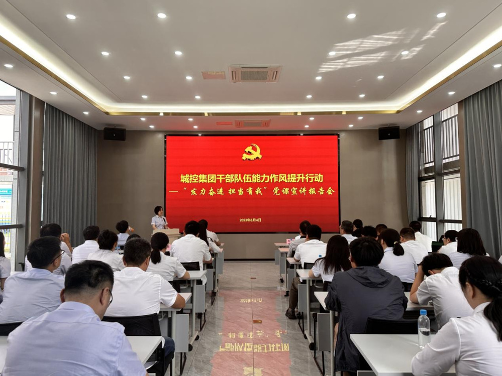 為深入學(xué)習(xí)貫徹習(xí)近平新時代中國特色社會主義思想和黨的二十大精神,切實提升集團(tuán)干部隊伍能力作風(fēng)建設(shè),8月4日上午,集團(tuán)在城建置業(yè)公司天璟融園項目部舉辦了第一場“發(fā)力奮進(jìn) 擔(dān)當(dāng)有我”黨課宣講報告會。集團(tuán)黨委副書記徐飛、集團(tuán)黨群部負(fù)責(zé)人,城建置業(yè)公司領(lǐng)導(dǎo)班子成員、各部門負(fù)責(zé)人、全體黨員,天璟融園項目參建、聯(lián)建單位黨員代表共計50余人參加活動。