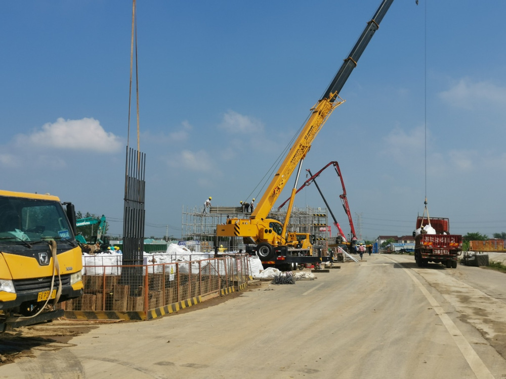 運河路北延工程起點位于江運互通,依次上跨寧啟鐵路,下穿北沿江高鐵,終點位于槐泗河以南約60米處,道路總長約1.28公里。工程于2023年6月開工建設,計劃于2024年12月竣工通車。目前,已完成鋼筋加工廠搭設、交通導改等工作,正在進行樁基、承臺、墩柱及支架搭設等施工。