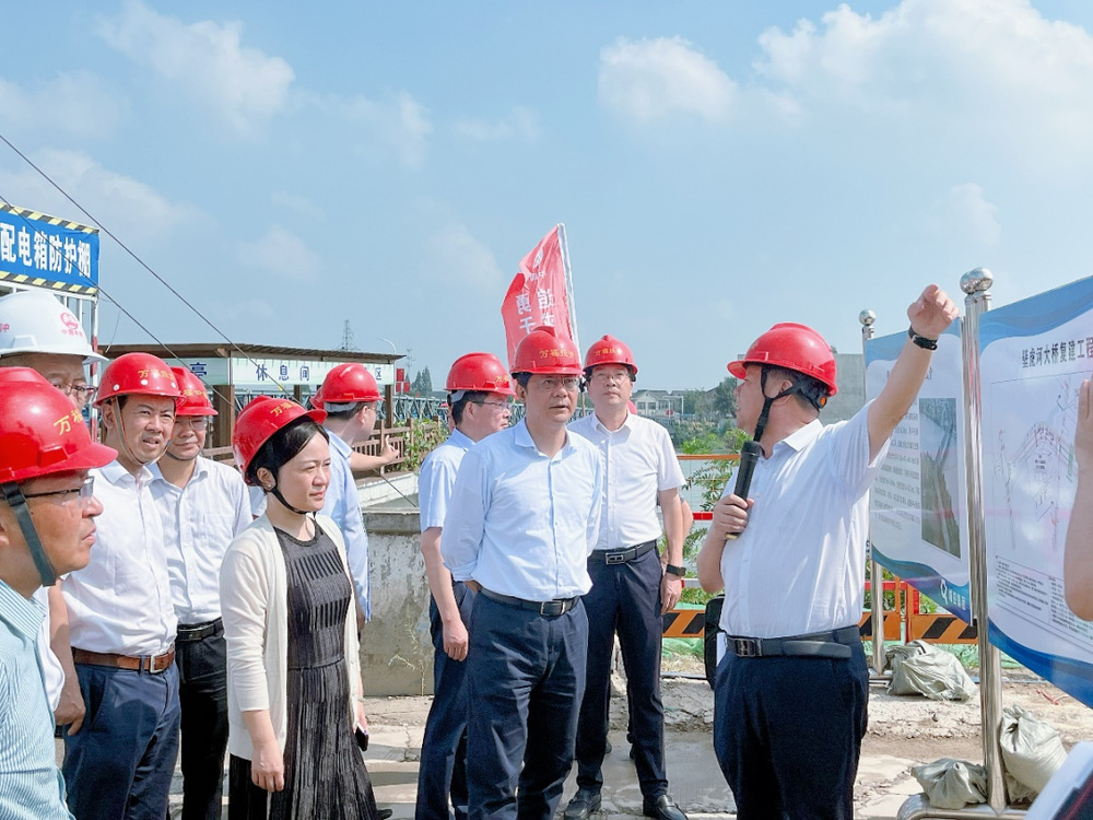 在施工現場,王進健一行聽取了壁虎河大橋工程、運河路北延工程施工進度及存在問題的匯報。他強調,城控集團要對照年度目標計劃要求,強化責任落實,明確目標節(jié)點,持續(xù)攻堅克難,在保證安全質量的前提下,全力推動項目建設提速增效,確保項目及早建成投用、早日發(fā)揮效益。