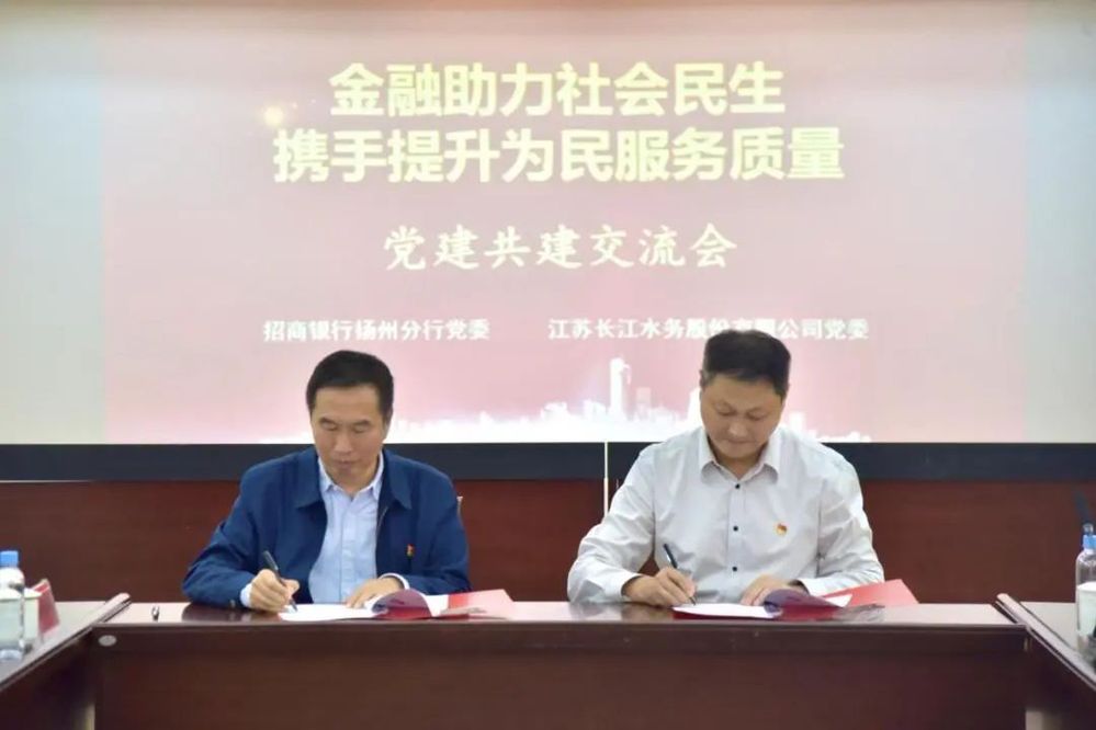 招商銀行揚州分行一行人員首先參觀了長江水務寶帶營業(yè)大廳、第五黨支部黨員活動室和供水調度(客服)中心。隨后,共建雙方分別介紹了經(jīng)營發(fā)展情況,就提高服務質量和服務能力等開展了座談交流。城控集團黨委委員、長江水務黨委書記、董事長張正斌和招商銀行揚州分行黨委書記、行長喻坤簽署《黨建共建協(xié)議書》。