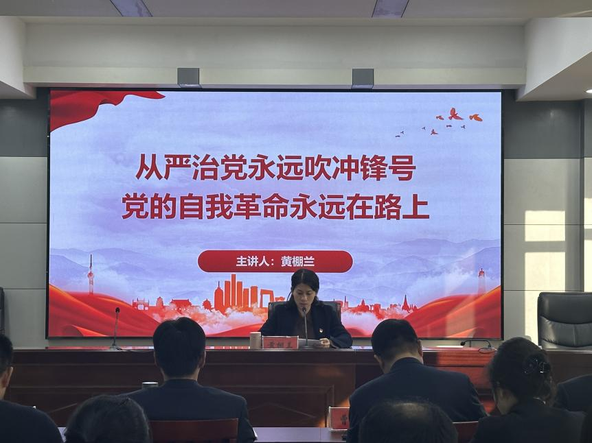 會(huì)議集中學(xué)習(xí)了《中國共產(chǎn)黨紀(jì)律處分條例》部分內(nèi)容,參會(huì)人員集中觀看了警示教育片《永遠(yuǎn)在路上》(第六集)。公司黨支部書記、總經(jīng)理黃棚蘭以《從嚴(yán)治黨永遠(yuǎn)吹沖鋒號(hào) 黨的自我革命永遠(yuǎn)在路上》為題講授黨課,并進(jìn)行了集體廉政談話,教育引導(dǎo)全體干部職工進(jìn)一步筑牢“知敬畏、存戒懼、守底線”的思想根基。