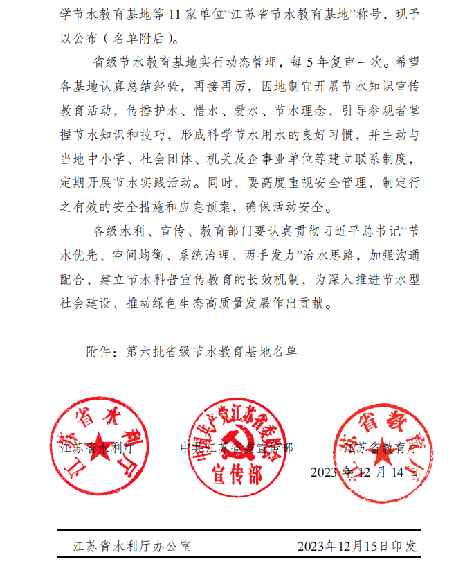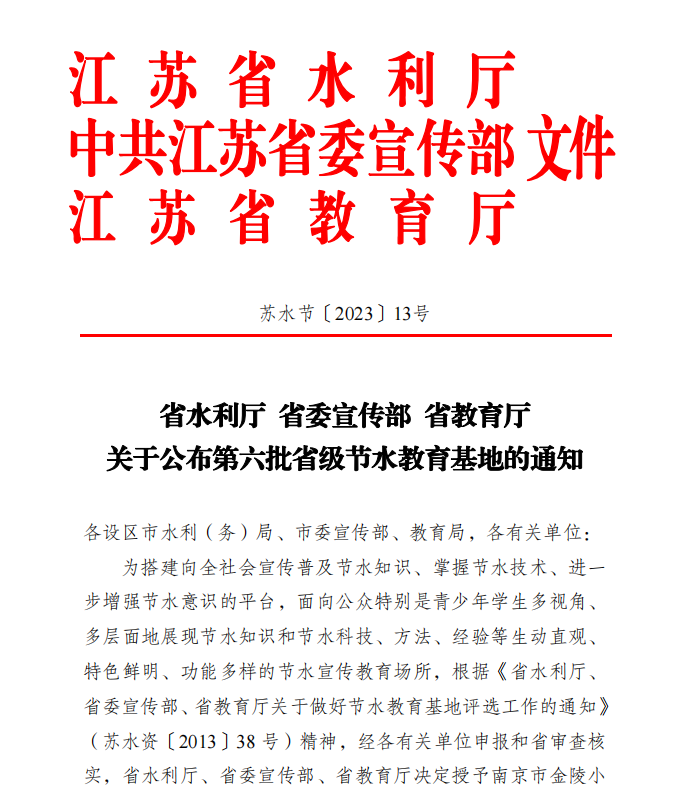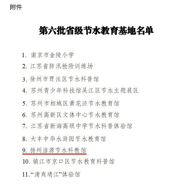 近日,由省水利廳、省委宣傳部和省教育廳聯(lián)合發(fā)文,揚(yáng)州潔源節(jié)水科教館順利通過評(píng)選驗(yàn)收,成功入選第六批省級(jí)節(jié)水教育基地。