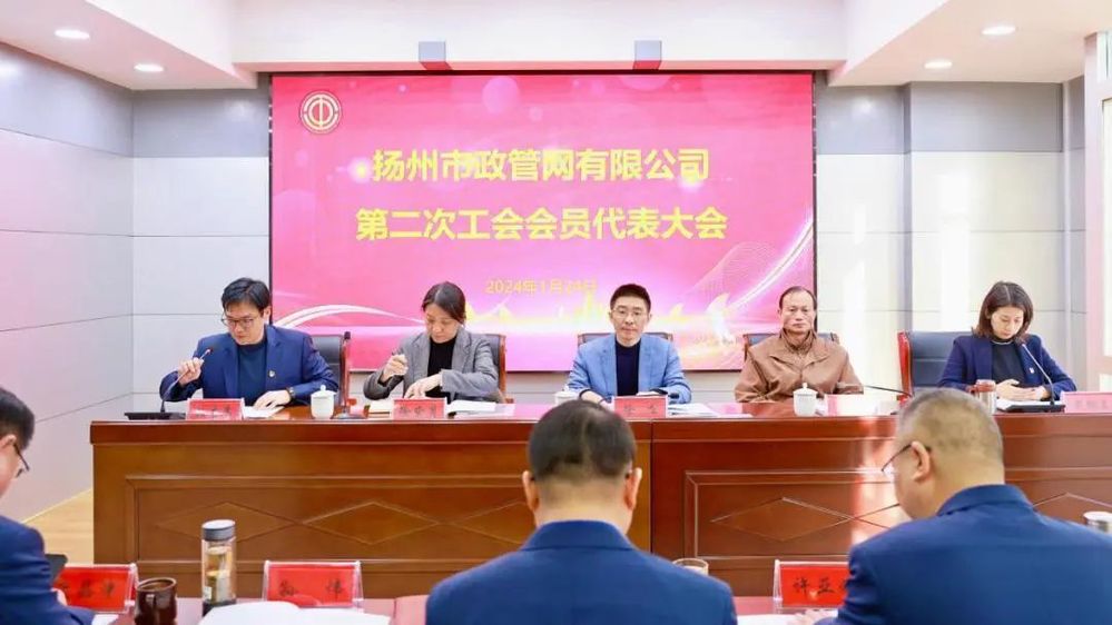 1月24日下午,揚州市政管網有限公司第二次工會會員代表大會順利召開。集團黨委副書記徐飛、市總工會建設工會主任范華、集團直屬聯(lián)合基層工會主席徐紫月應邀參會,公司工會會員代表參加會議。