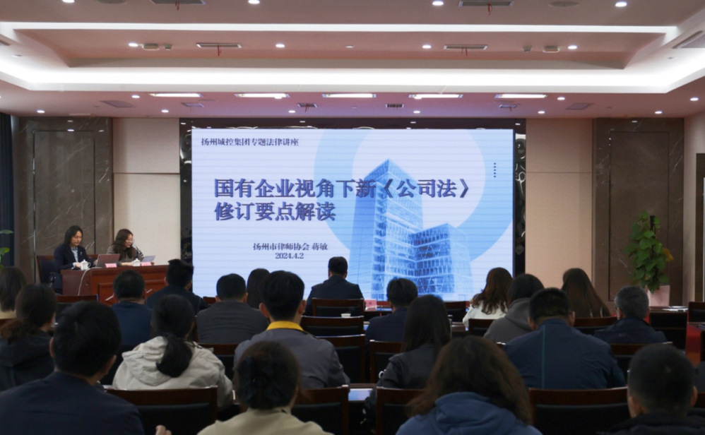 4月2日下午,城控集團(tuán)組織開展新《公司法》專題法律講座,深入學(xué)習(xí)新《公司法》重大修訂內(nèi)容,推進(jìn)集團(tuán)依法治企與合規(guī)管理?;顒?dòng)邀請(qǐng)揚(yáng)州市律師協(xié)會(huì)副會(huì)長(zhǎng)蔣敏授課,集團(tuán)副總經(jīng)理吳健出席活動(dòng)并講話,集團(tuán)法務(wù)部、各單位法務(wù)分管領(lǐng)導(dǎo)、職能部室負(fù)責(zé)人及法務(wù)專員近60人參加講座。