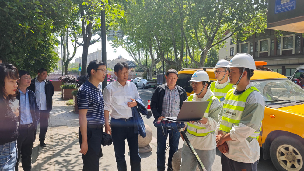 4月25日上午,江蘇省城市生命線安全工程建設(shè)推進(jìn)工作領(lǐng)導(dǎo)小組領(lǐng)導(dǎo)在鹽阜路雷達(dá)空洞探測(cè)現(xiàn)場(chǎng),實(shí)地調(diào)研揚(yáng)州市政管網(wǎng)公司雷達(dá)空洞探測(cè)工作開(kāi)展情況,并給予技術(shù)指導(dǎo)。