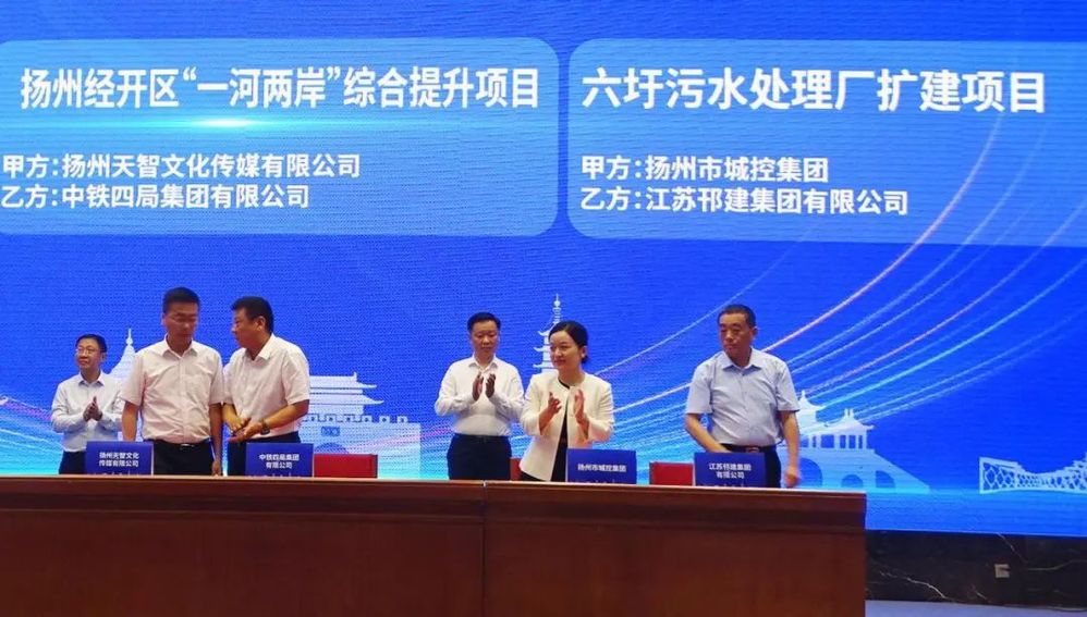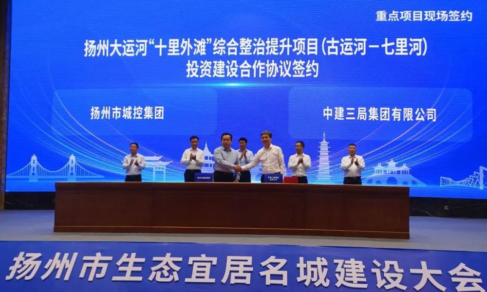 會上,11個項(xiàng)目舉行現(xiàn)場簽約。其中,城控集團(tuán)與中建三局圍繞提升城市服務(wù)功能,簽訂《揚(yáng)州大運(yùn)河“十里外灘”綜合整治提升項(xiàng)目(古運(yùn)河-七里河)投資建設(shè)合作協(xié)議》,與江蘇邗建集團(tuán)圍繞基礎(chǔ)設(shè)施改善,簽訂六圩污水處理廠擴(kuò)建項(xiàng)目。此次簽約,各方將本著優(yōu)勢互補(bǔ)、互惠互利、協(xié)同發(fā)展原則,共同推動揚(yáng)州大運(yùn)河文旅資源開發(fā)及城市基礎(chǔ)設(shè)施建設(shè),為揚(yáng)州高質(zhì)量發(fā)展貢獻(xiàn)新的更大力量。