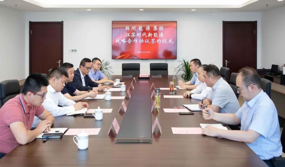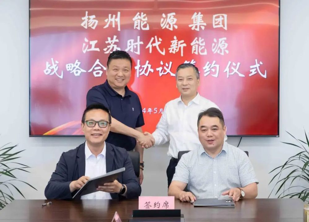 5月29日下午,揚州能源集團與江蘇時代新能源科技有限公司簽訂發(fā)展合作框架協(xié)議,城控集團副總經理、能源集團董事長孔德存與寧德時代區(qū)域總經理陳凌出席簽約儀式。