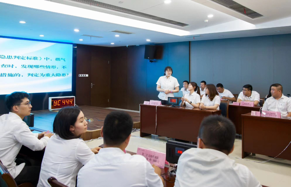 為進(jìn)一步強(qiáng)化全員安全意識(shí),夯實(shí)安全生產(chǎn)基層基礎(chǔ)管理,增強(qiáng)全體員工風(fēng)險(xiǎn)隱患判斷能力和應(yīng)急逃生處置能力,6月21日下午,揚(yáng)州中燃公司舉辦了2024年“安康杯”知識(shí)競(jìng)賽,公司領(lǐng)導(dǎo)班子成員出席活動(dòng),各黨支部和團(tuán)支部組成6支代表隊(duì)參加比賽,50余名職工觀摩活動(dòng)。