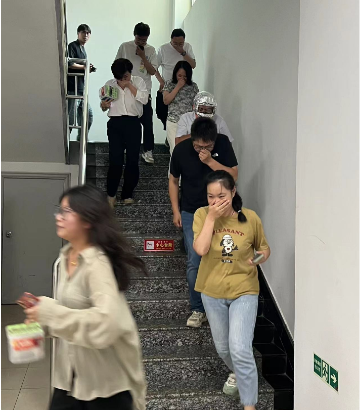 逃生疏散演練環(huán)節(jié)包括演練啟動、險情警報、疏散逃生、演練結(jié)束和現(xiàn)場清理。整個過程現(xiàn)場指揮有序,演習(xí)人員服從指揮,相互提醒,反應(yīng)迅速,安全撤離,在較短時間內(nèi)完成應(yīng)急疏散演練任務(wù),體現(xiàn)出大家的良好合作精神和應(yīng)急處置能力,達(dá)到了預(yù)期目的。