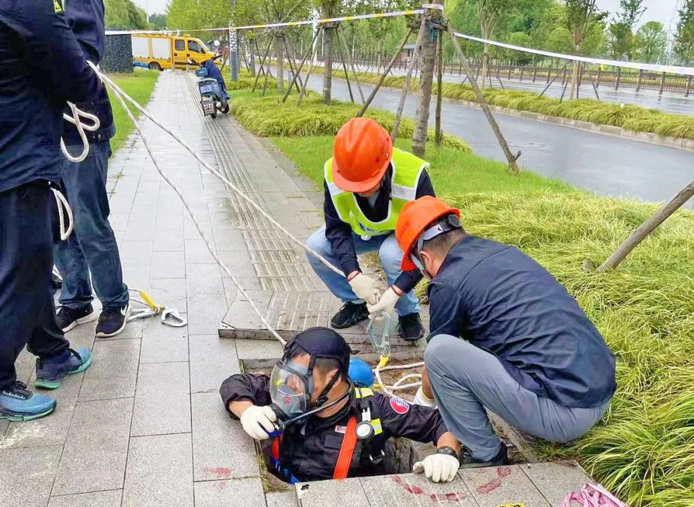 演練開始前,現(xiàn)場演練負(fù)責(zé)人詳細(xì)講解了受限空間作業(yè)流程。作業(yè)人員進(jìn)行了現(xiàn)場演示,按照“先通風(fēng)、再檢測、后作業(yè)”的原則,下井作業(yè)前開啟風(fēng)機(jī),對井下進(jìn)行強(qiáng)制通風(fēng),查驗(yàn)和檢測井內(nèi)有毒氣體,確保設(shè)備正常使用、受限空間內(nèi)符合作業(yè)條件后,搶維護(hù)人員下井作業(yè)。