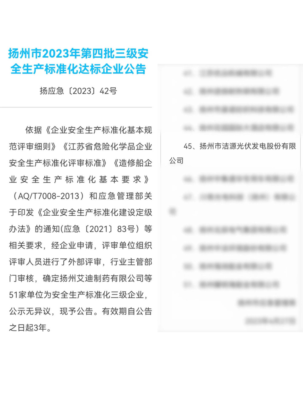 安全生產(chǎn)持續(xù)穩(wěn)定。持續(xù)強(qiáng)化設(shè)備檢修、高空作業(yè)、工程施工等重點(diǎn)部位的安全管控,細(xì)致做好光伏電站電氣設(shè)備和消防設(shè)施的隱患排查整治工作,并從安全目標(biāo)管理、隱患排查治理、職業(yè)健康管理、安全培訓(xùn)和應(yīng)急管理等要素入手,全面推進(jìn)安全生產(chǎn)標(biāo)準(zhǔn)化建設(shè),于2023年4月獲評揚(yáng)州市三級安全生產(chǎn)標(biāo)準(zhǔn)化達(dá)標(biāo)企業(yè),自成立以來未發(fā)生一起安全生產(chǎn)責(zé)任事故。