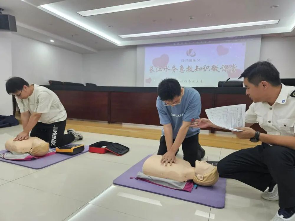 此次急救知識培訓(xùn)包括理論講解、現(xiàn)場演示、實踐操作三個環(huán)節(jié),揚州市急救中心汪茂勝、吳枝兩位老師結(jié)合多年的工作實踐,通過真實的案例為公司職工普及急救黃金時間,重點講述了心肺復(fù)蘇、AED除顫儀、常見意外和疾?。缢?、中暑、癲癇、心梗、中風(fēng))等相關(guān)急救知識的處置方式、正確步驟和注意事項。參與培訓(xùn)的職工們現(xiàn)場分組參與演練,按照兩位老師的指導(dǎo),親身實踐操作了心肺復(fù)蘇、海姆立克急救法和意外傷害應(yīng)急處置等急救措施。長江水務(wù)黨委委員、紀(jì)委書記、工會主席陳駿為獲得揚州市社會急救員培訓(xùn)證的職工代表頒發(fā)了證書。
