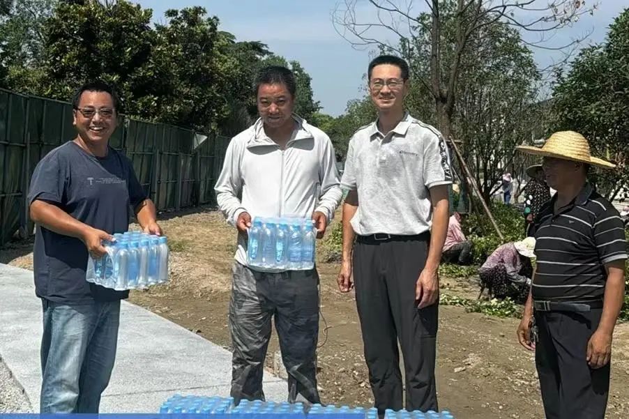 在京杭融園、九境融園、銀墅灣綠化養(yǎng)護(hù)項(xiàng)目、15米風(fēng)光帶景觀綠化項(xiàng)目等多個(gè)施工現(xiàn)場,城建園林經(jīng)理曾天斌帶領(lǐng)職工們共同為一線工人們送上數(shù)箱飲用水,叮囑大家注意防暑,保障自身的安全健康?!胺浅8兄x公司的關(guān)心,我們一定會堅(jiān)守崗位、努力工作,同時(shí)也會注意高溫避暑休息,錯(cuò)峰養(yǎng)護(hù)”領(lǐng)到防暑降溫物資后,綠化養(yǎng)護(hù)工王師傅笑著說道。