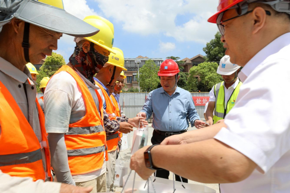 “高溫天氣,工作辛苦,大家要好好照顧自己,做好個(gè)人防護(hù)?!?炎炎夏日送清涼,滴滴關(guān)愛(ài)暖人心。每到一處,城控集團(tuán)董事長(zhǎng)張思忠都詳細(xì)詢問(wèn)職工們高溫天氣下的工作和生活狀況,叮囑大家,勞逸結(jié)合,做好防護(hù),確保安全生產(chǎn)和身體健康。