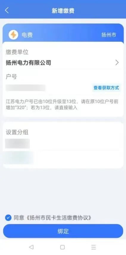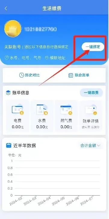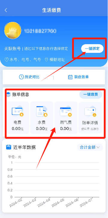 如您需要為其他賬號繳費,可點擊一鍵綁定,選擇對應繳費類別添加新賬號。