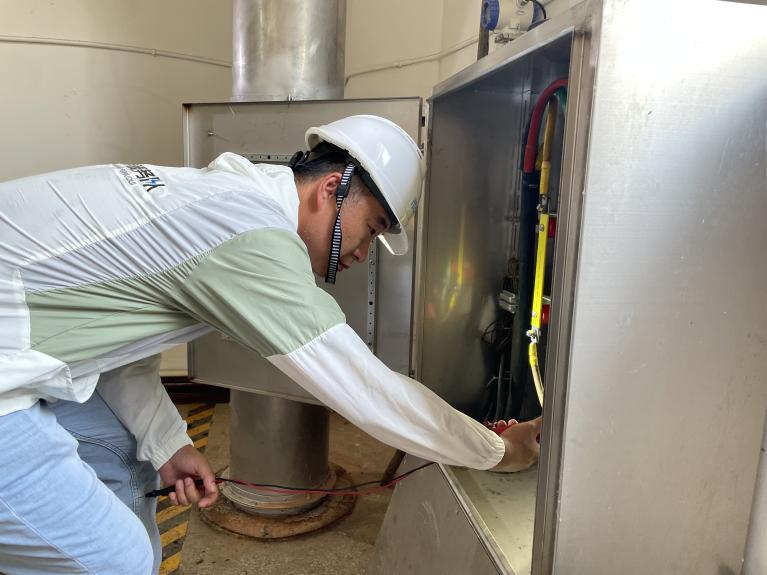 當夏日清晨的第一縷陽光灑下,晏國柱同志便開始了一天緊張而又繁重的工作,在150公里的熱網(wǎng)沿線奔波,為高溫下的設備“做體檢”。由于很多操作點都在田間地頭,車輛無法駛入,晏國柱手持工具走向一片綠色之中,沒有一絲遮擋,腳底都能感覺到那一股滾燙。他仔細傾聽設備運行的聲音,用敏銳的目光捕捉著每一絲異常,著重看設備有無損壞、連接點有無泄露、管道內(nèi)是否有積水,及時將發(fā)現(xiàn)的安全隱患處理解決。豆大的汗珠順著臉頰往下滴落,累了,他就在陰涼處稍作休息,渴了,就喝上一口隨身攜帶的水,眼神中充滿了堅定。
