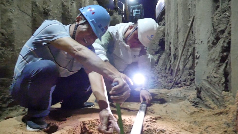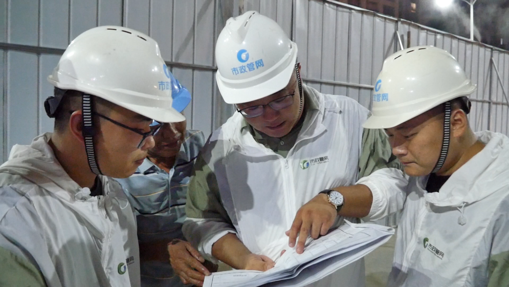 凌晨兩點,城市進入夢鄉(xiāng),只剩蛙叫蟬鳴。邗江北路積水點施工現(xiàn)場依然一片火熱,管網(wǎng)運營二所熊永祺與工程建設處儲智毅、張和鵬三人正在討論著施工圖紙。為保證工程進度,市政管網(wǎng)公司采取“干兩頭、歇中間”的工作方法,避開中午高溫,夜間多趕工,保質(zhì)量,搶工期。工程建設處張和鵬介紹,今年,我市已經(jīng)啟動了一系列針對城市易澇積水點的綜合整治工作,管網(wǎng)公司亦積極投身其中,改造并優(yōu)化相關積水點的管網(wǎng)系統(tǒng)與溝渠設施,從根本上解決積水問題。
