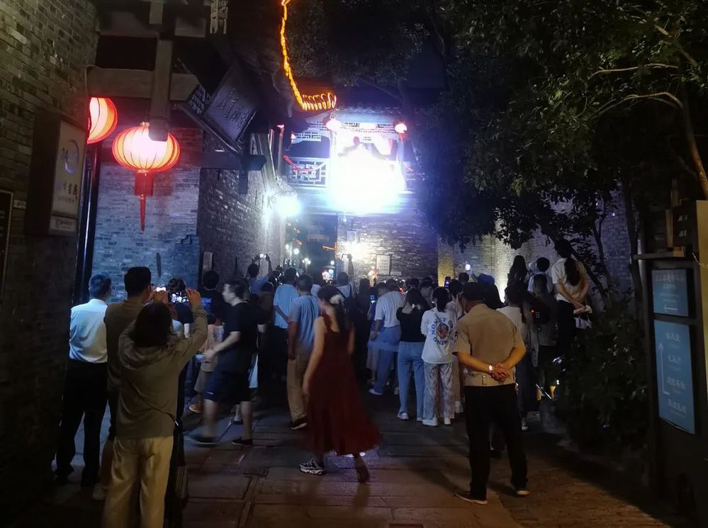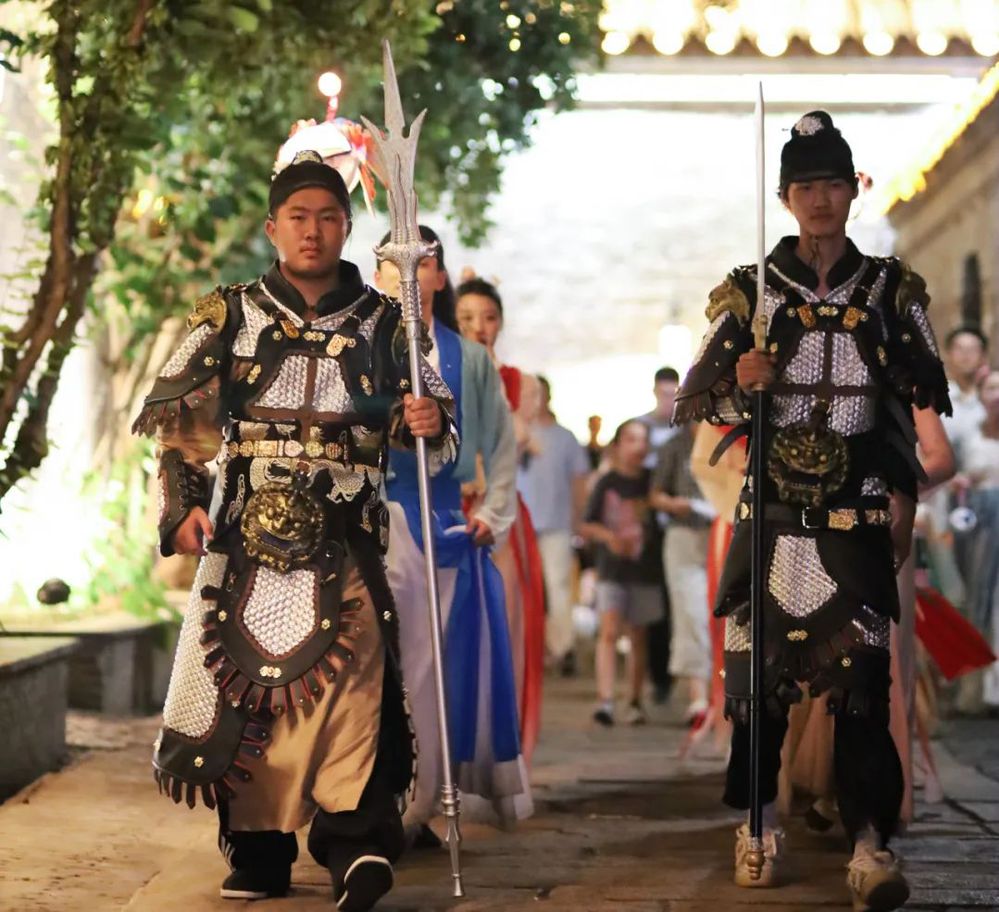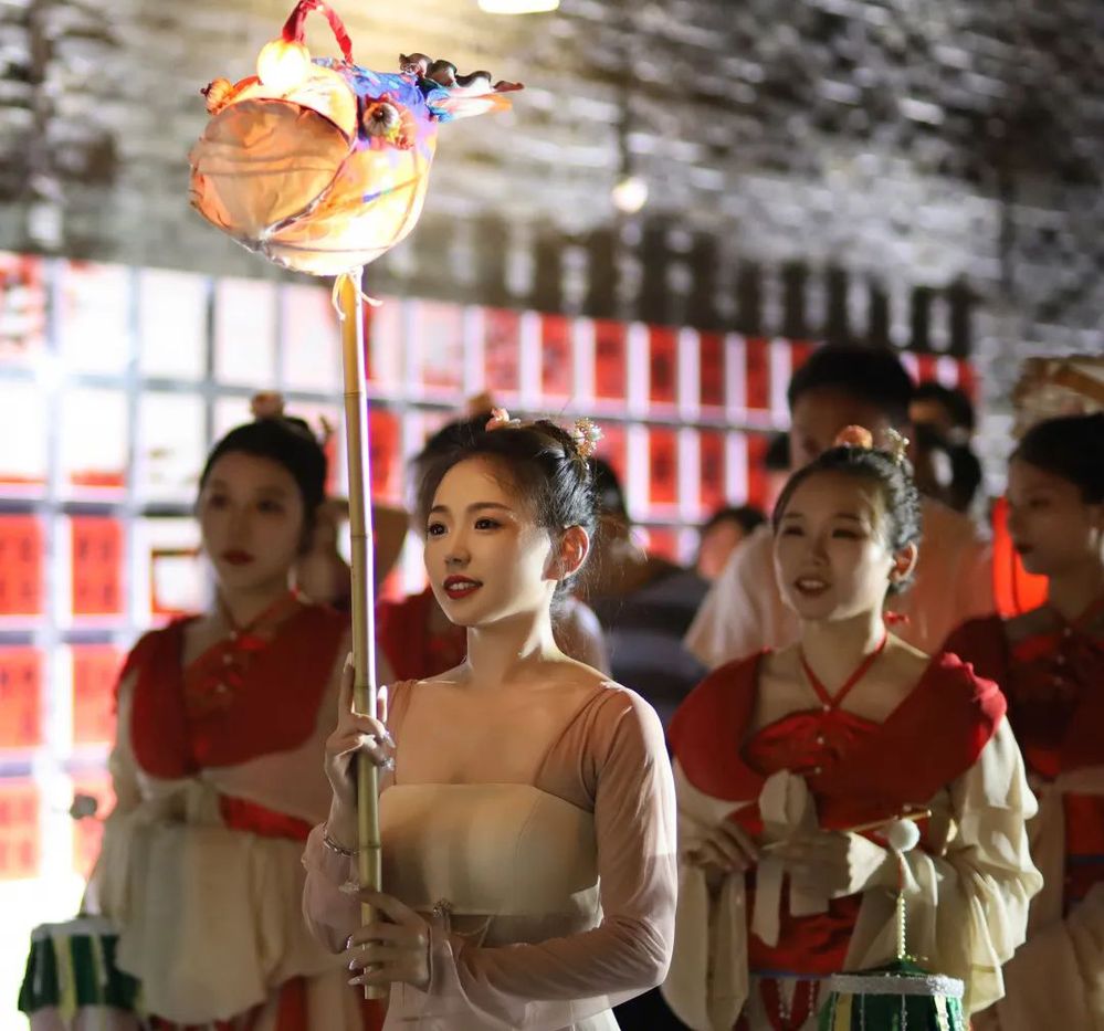 演繹人員手持魚燈等傳統(tǒng)道具,引領(lǐng)身穿漢服的嘉賓和游客由含藻亭-廊橋-街南書屋-東關(guān)街,進行了一場穿越古今之旅——“魚燈巡游”,成功圈粉東關(guān)街眾多市民和游客。