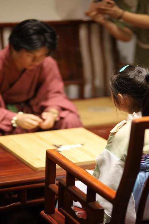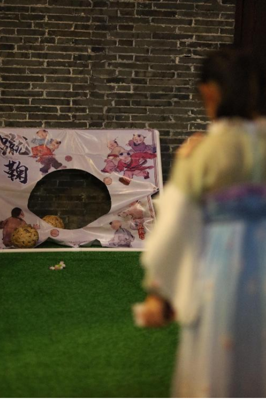此外,游園會還設(shè)置了蹴鞠、投壺、對弈、捶丸、對月穿針(茉莉花手鏈串制)、非遺漆扇等傳統(tǒng)項目,大家在沉浸式體驗中感受了中國傳統(tǒng)文化的魅力和獨特的中式浪漫。