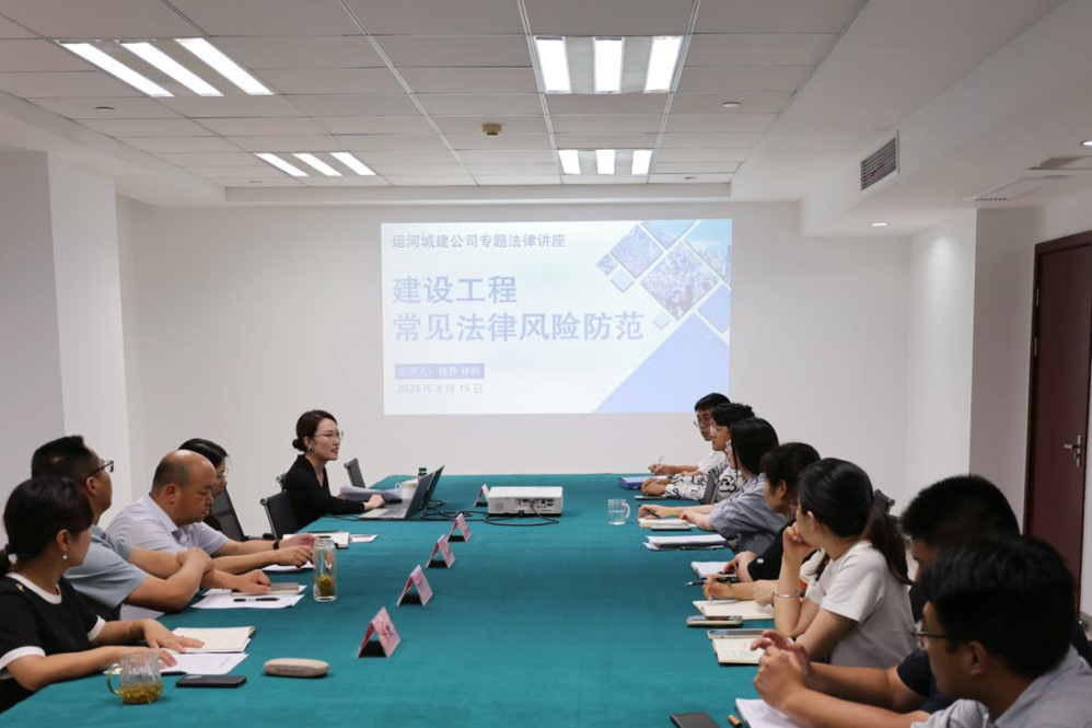 為進(jìn)一步提高干部職工法律意識和法律風(fēng)險(xiǎn)防范能力,8月19日下午,運(yùn)河城建公司邀請江蘇中杜律師事務(wù)所合伙人——魏靜律師,開展“建設(shè)工程常見法律風(fēng)險(xiǎn)防范”專題講座。公司全體干部職工參加活動(dòng)。