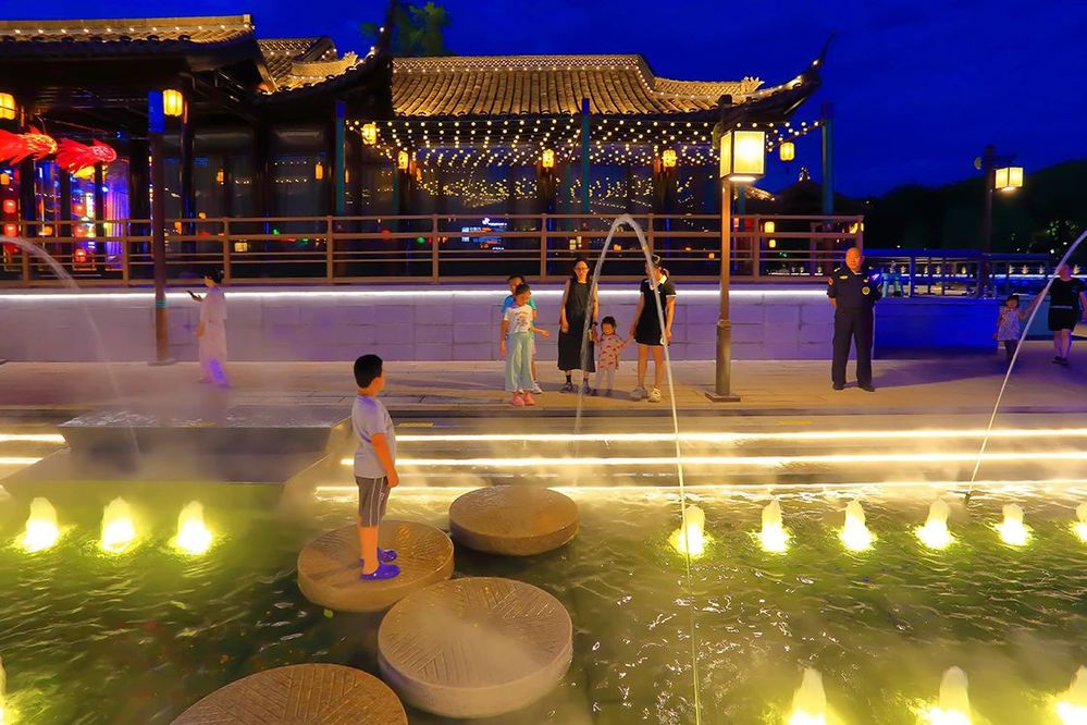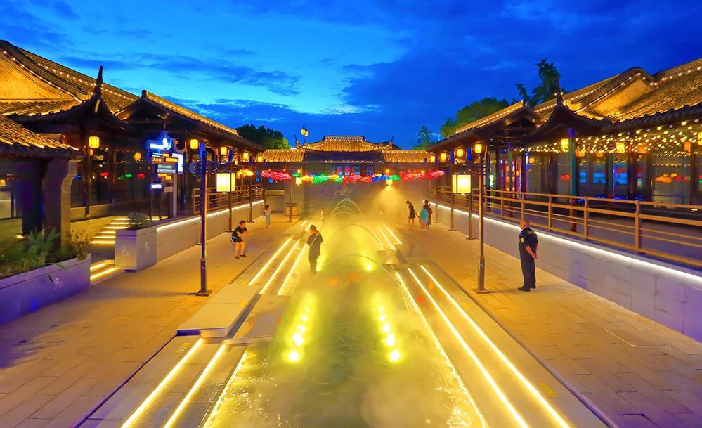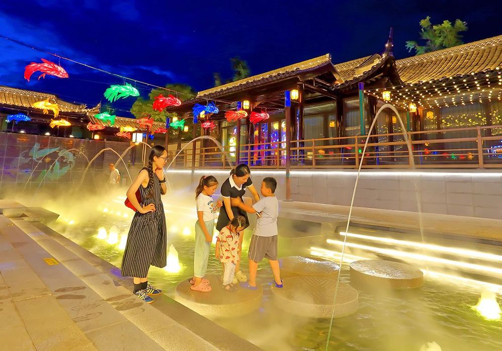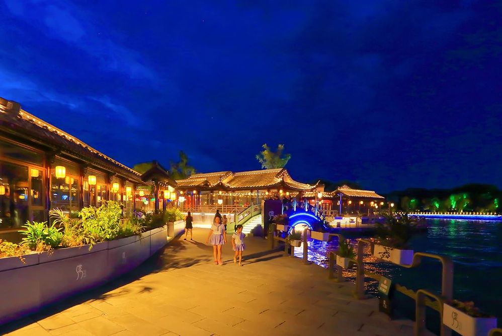 最引人注目的莫過于古色古香的建筑和華燈初上的夜景從高處俯瞰大水灣街區(qū)猶如微笑的古運河的點睛之筆、神來之筆展現(xiàn)了歷史文化與現(xiàn)代風尚的交融之美