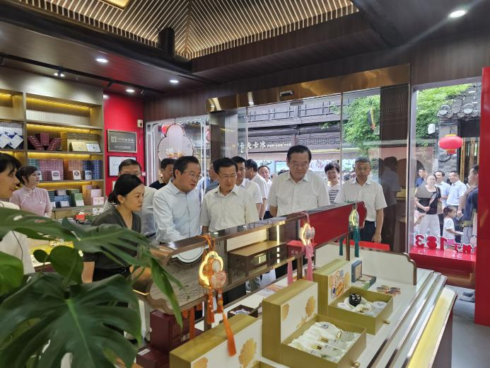 王立平一行沿東關(guān)古街,實地察看周邊風(fēng)貌,了解街區(qū)歷史沿革和文旅資源保護(hù)利用等情況,深入冬榮園、謝馥春、街南書屋、揚(yáng)州漆器廠等店鋪商家,聽取情況介紹,詳細(xì)了解街區(qū)招商、老字號傳承、文商旅產(chǎn)業(yè)融合工作所取得的成效,并對揚(yáng)州城控集團(tuán)堅持保護(hù)與利用、改造與復(fù)興、傳承與發(fā)展相結(jié)合理念,扎實推進(jìn)古城項目建設(shè)和經(jīng)營管理方面取得的成績予以了充分肯定。
