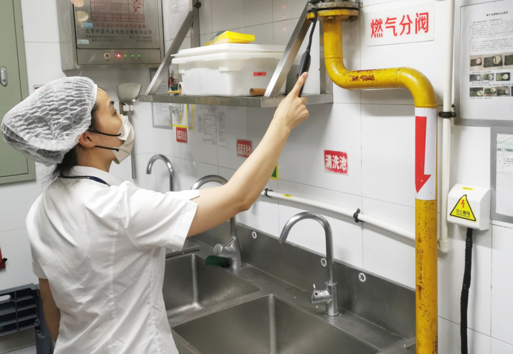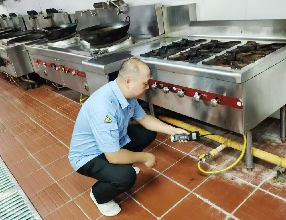 安檢人員秉持著嚴(yán)謹(jǐn)認(rèn)真的態(tài)度,對(duì)學(xué)校食堂的燃?xì)夤艿肋M(jìn)行了全方位的檢測(cè)。重點(diǎn)排查燃?xì)夤艿朗欠裼懈g、破損、裂縫等跡象,不放過(guò)任何一個(gè)可能存在安全隱患的細(xì)節(jié)。在檢查過(guò)程中,安檢人員不僅專(zhuān)注于硬件設(shè)施的檢查,還向?qū)W校工作人員詳細(xì)講解燃?xì)獍踩褂弥R(shí),強(qiáng)調(diào)燃?xì)庠O(shè)備日常維護(hù)的注意事項(xiàng),叮囑要定期檢查燃?xì)夤艿篮驮O(shè)備的密封性、保持通風(fēng),避免在燃?xì)庠O(shè)施周?chē)逊乓兹嘉锲返取?duì)食堂員工現(xiàn)場(chǎng)講解了遇到燃?xì)庑孤┑染o急情況時(shí),須迅速關(guān)閉燃?xì)忾y門(mén)、打開(kāi)門(mén)窗通風(fēng)、切勿使用明火和電器設(shè)備、及時(shí)撤離現(xiàn)場(chǎng)并撥打緊急救援電話(huà)等避險(xiǎn)應(yīng)急措施。