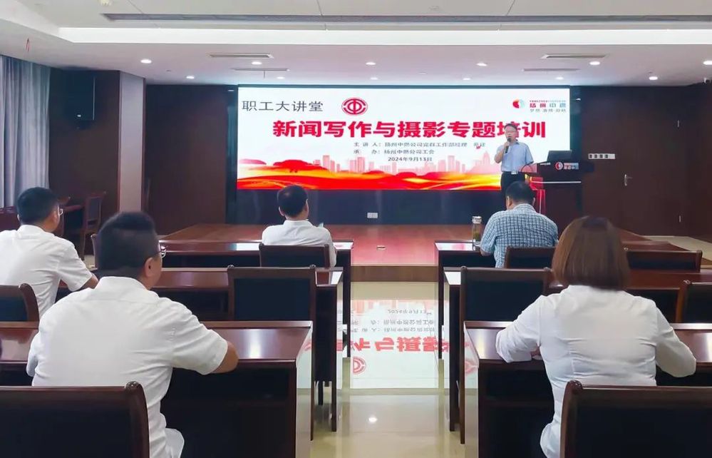 為進一步提高干部職工的新聞寫作能力和攝影水平,加強宣傳隊伍建設,9月13日下午,揚州中燃公司工會舉辦2024年第三期“職工大講堂”,邀請公司黨群工作部部長蔡建作新聞寫作與攝影專題培訓。公司分管負責人、干部職工代表近60人參加培訓。