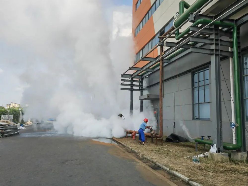 9月13日下午時(shí)分,轟鳴聲驟然響起,一縷潔白的蒸汽如龍般從供熱管道中噴涌而出。經(jīng)過連續(xù)一天的緊張作業(yè),領(lǐng)煌科技內(nèi)部的供熱工程順利完成了沖管吹掃工作。