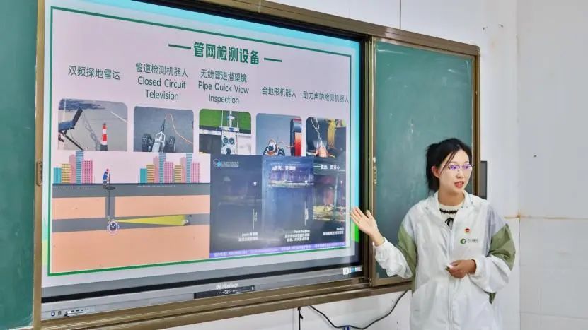 接著,890管網(wǎng)服務隊的“管道醫(yī)生”通過介紹和操作管網(wǎng)檢測設備,使學生們直觀地認識到這些“醫(yī)療設備”在市政雨、污水管網(wǎng)缺陷排查和診斷中的重要作用。