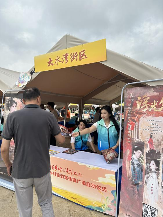 在活動現(xiàn)場,街區(qū)通過精美的展板和彩頁展示了唐朝詭事錄·西行”國潮沉浸劇場、“浮光機關(guān)劇場”及“對影古風酒館”等街區(qū)新開發(fā)的文旅新場景項目,也宣傳推介了包括淮揚菜博物館、鹽宗廟、精品淮揚菜餐飲等在內(nèi)的街區(qū)傳統(tǒng)項目。通過視頻、展板及工作人員的介紹,讓活動參與者更加直觀地感受到了大水灣街區(qū)的魅力。