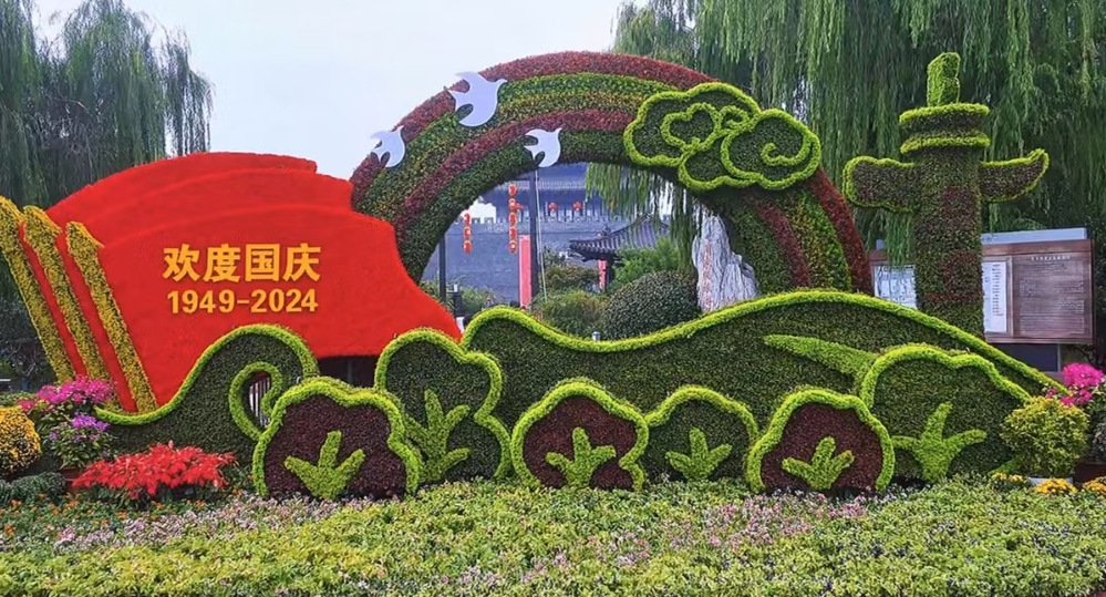 為了給游客群眾營造色彩繽紛、喜慶祥和的國慶氛圍,東關(guān)街景區(qū)利用大型園林綠雕和時(shí)令鮮花,營造繁花似錦、姹紫嫣紅的熱烈氛圍迎接新中國成立七十五周年。