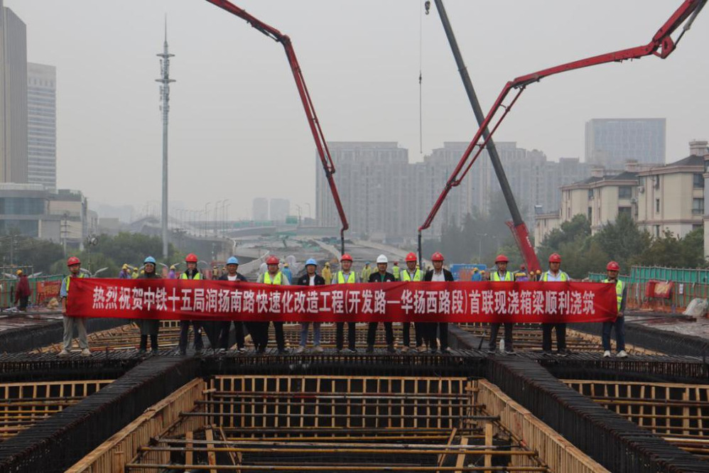 10月14日,繼昨日潤揚(yáng)南路快速化改造工程中鐵十五局段完成首次箱梁澆筑,歷經(jīng)12小時(shí)的連續(xù)作業(yè),江蘇邗建段也順利完成了首次箱梁澆筑。